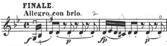 こうした半音を狭く取らなければならないというのは当然ですが、ここでは1指と2指を交互に置くということまでしてやらなければどうもうまくない。それほど高いポジションでもないのにそうなるのは、テンポが速いのに、もともと反応の遅いG線のレスポンスが、普通に指を置いたのでは追いつかないということかと思います。
