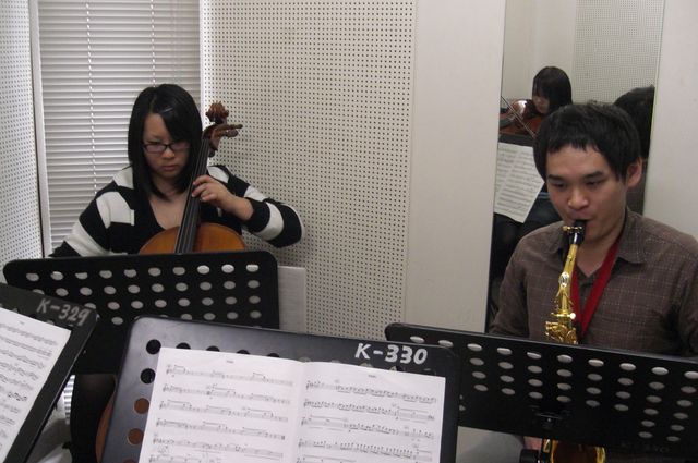 音楽大学に比べたら授業などの割合は少なめかもしれないけどレベルの高い学生が集まっています。弦楽器も割と充実している方です。