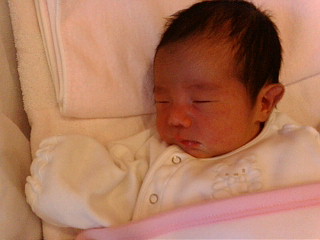 まだ名前がありません。そして生まれて24時間たっておりません。弟夫婦の長女です。とにかく可愛いですけど、やっぱりサルみたいです。(弟よ、ゴメン)身長48センチ?体重30・・・