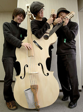 あら不思議、一つの楽器で三重奏12月13日21時8分配信 時事通信コントラバス、ウクレレ、ギターを合体させた楽器。手作り楽器のコンテストで大賞を受賞した。「みんなと一緒・・・