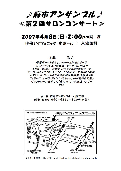 【演奏会】麻布アンサンブル大阪支部 第2回サロンコンサート